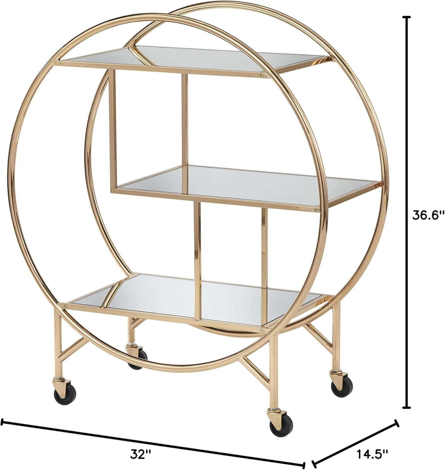 | Item Type Name | Modern Contemporary Round Bar Cart with 3 Mirrored Shelves |