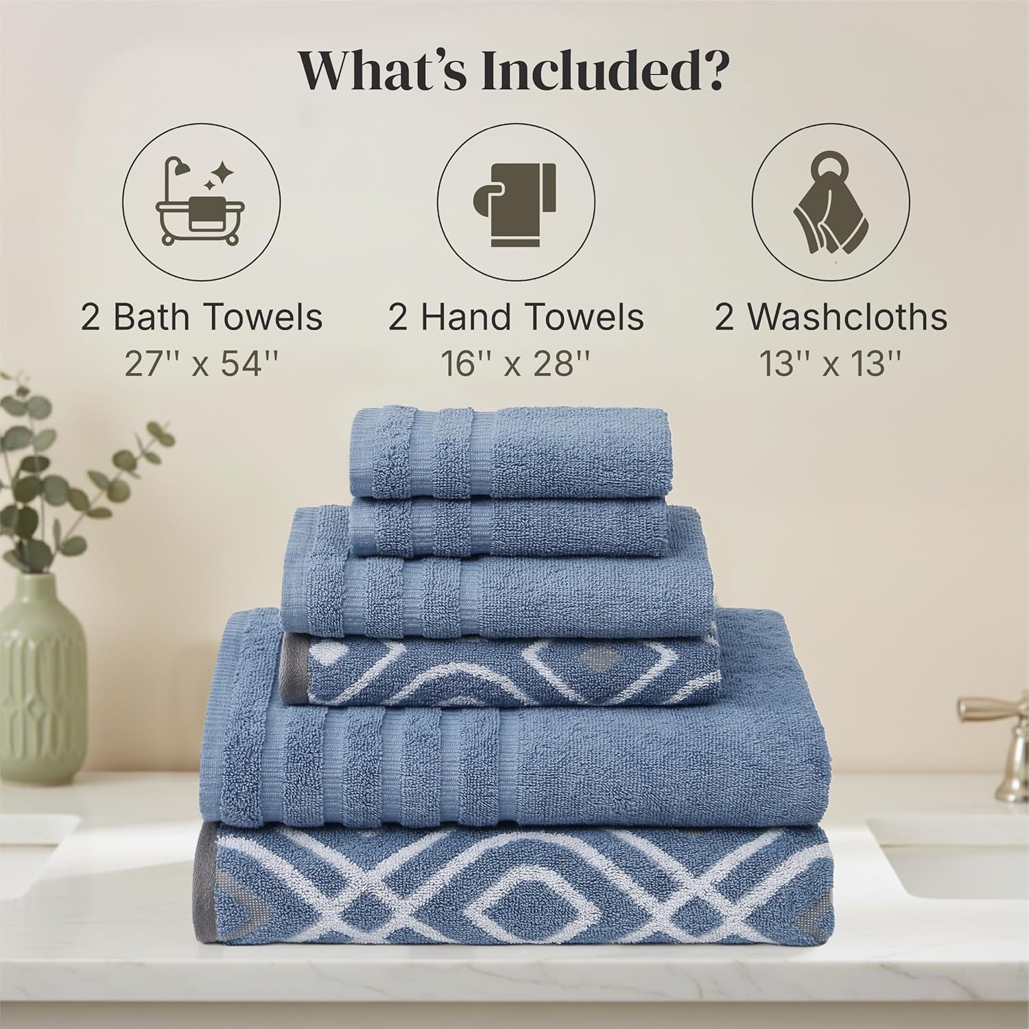 | Model Name | Oxford 6-Piece 100% Cotton Towel Set – Yarn Dyed Jacquard & Solid – Includes 2 Bath Towels, 2 Hand Towels, 2 Washcloths – |