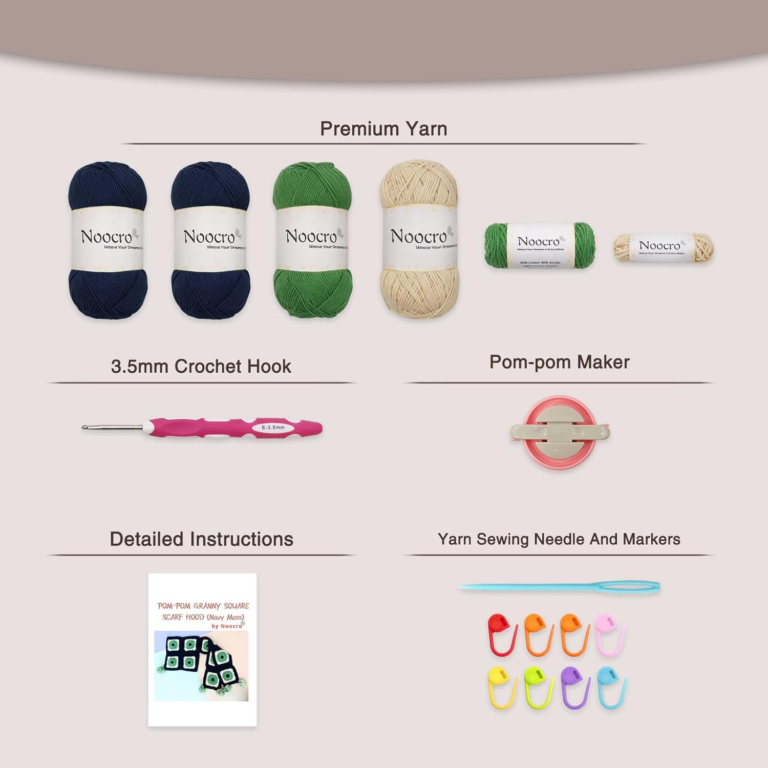 Create your own cozy and stylish scarf hood with this all-in-one crochet kit! Inspired by classic granny square design with a modern pom-pom twist, this set includes everything you need to complete a charming scarf hood that’s perfect for chilly days. Whether you’re a beginner or a seasoned crocheter, you’ll enjoy the soothing process of crafting a wearable piece of art. This kit makes a thoughtful gift for any DIY lover and a great weekend project for yourself.